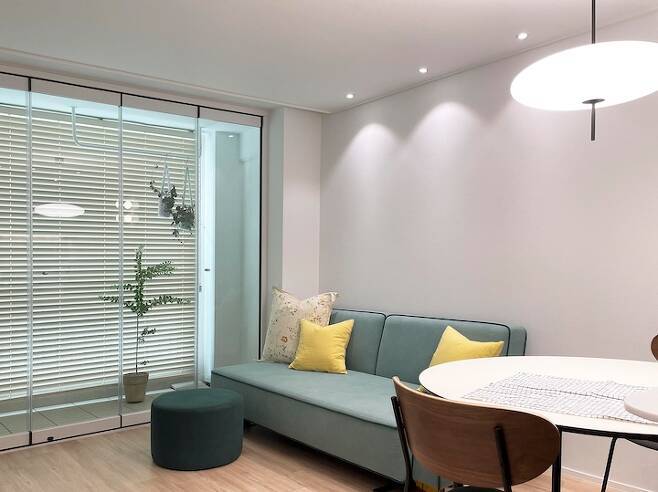 아파트 단지 뒤로 산책로도 있고 탁 트인 하늘과 산이 보여서 날씨가 맑은 날은 물론이고 흐린 날도 운치 있고 멋진 풍경을 볼 수 있어요. 구축 아파트이지만 단지 관리나 엘리베이터를 새로 교체한 것 등 생활에 편리한 요소도 만족스러웠고 집 내부만 개성 있게 꾸미면 행복한 우리만의 라이프 스타일을 만들어갈 수 있겠다는 확신이 들었어요.