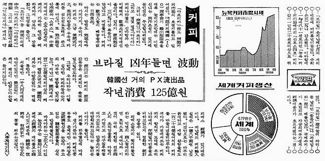 | ▲ 1970년 5월 18일 자 <동아일보> 기사 "커피 - 브라질 흉작들면 파동, 작년 소비 125억 원" |