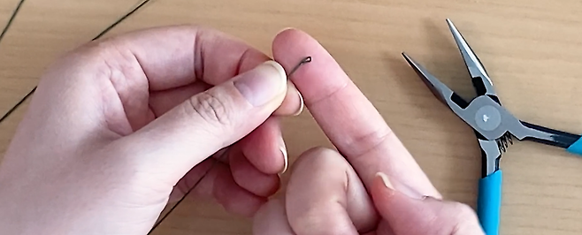 ● 철사 끝부분을 롱노우즈 니퍼 앞쪽 부분에 감아 동그란 고리를 만들어주고 고리 끝부분을 니퍼로 잘 눌러 마무리해주세요.