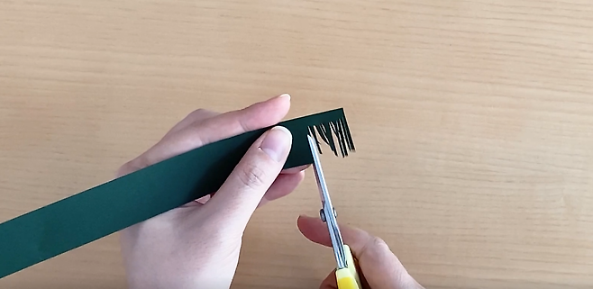 * 이렇게 촘촘하게 자르는 기법을 "프린지"라고 부르고, 이 기법은 페이퍼 플라워에서 섬세한 수술을 만들 때도 자주 사용합니다.