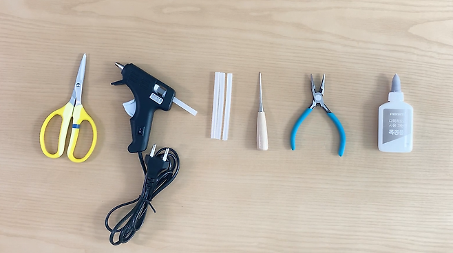 ● 도구 재료 : 가위, 글루건, 송곳, 롱노우즈니퍼, 목공풀