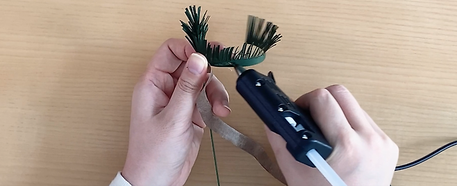 ● 갈색 꽃 테이프를 충분히 늘려주고, 철사 끝부분을 약 1~1.5cm 정도 높이로 여러 번 감아 약간 통통하게 만들어 꽃눈 느낌을 내줍니다.