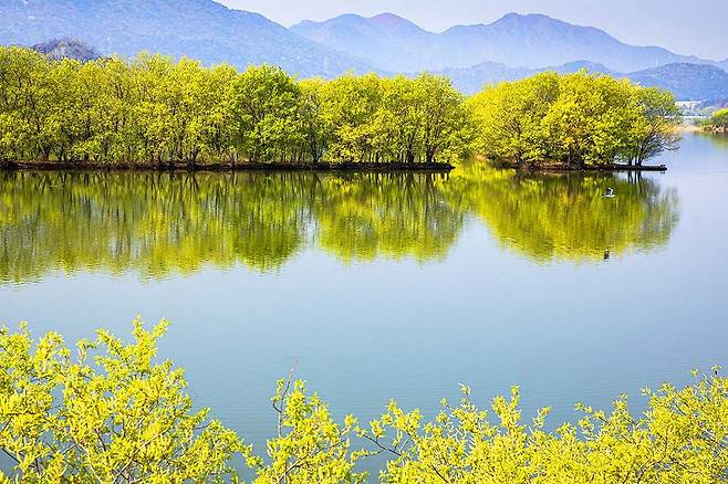 천주산 아래 동읍에 위치한 주남저수지는 겨울철 철새 도래지로 잘 알려졌지만, 봄에는 또 다른 매력을 드러냅니다. 따뜻한 햇살 속에서 신록이 돋아나고, 남은 오리류 텃새들이 조용히 물 위를 누비며 봄의 평온함을 더해줍니다.