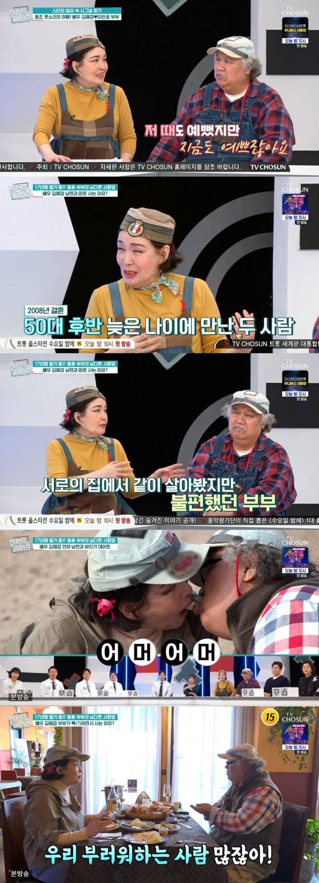 2025년 4월 16일 방송된 TV CHOSUN '퍼펙트 라이프'에는 김애경과 5세 연하 남편이 출연해 '따로 또 같이'하는 부부 일상을 공개했는데요. 배우 김애경은 남편과 결혼 후 17년간 별거 중인 사연을 털어놨습니다.