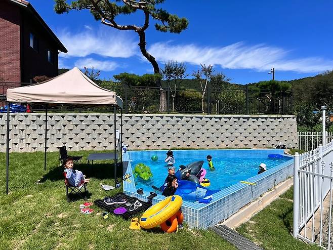 저희는 가족 모두가 수영을 좋아하고, 강아지도 함께 수영을 해요. 여름엔 아이들이 하루 종일 노는 장소이기도 하죠. 그렇기 때문에 물 청소와 물갈이도 자주 하고 있답니다. 보통 수도세 걱정을 많이 하시던데 한 여름에는 대략 25만 원 정도가 나왔어요.