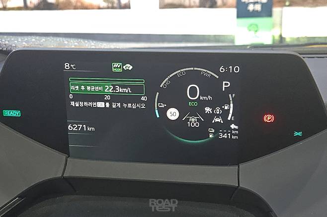오후 6시 10분, 퇴근길 정체가 시작될 무렵 서울에 무사히 도착했다. 주행거리는 382㎞. 중간 경유지를 거치지 않아 부산으로 내려갈 때보다 약 30㎞ 덜 달렸다. 계기판 트립 연비와 풀-투-풀 연비는 각각 ‘22.3㎞/L’와 ‘21.8㎞/L’. 전기 모터의 도움을 받지 못한 탓인지 두 수치 모두 첫날보다 줄었으나, 반대로 오차는 줄었다. 또한 고속도로 휘발유 연비인 1L당 18.5㎞도 손쉽게 넘어섰다.