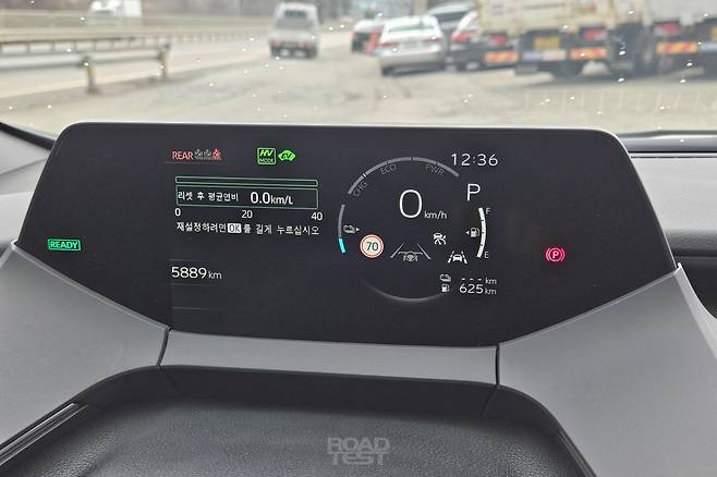이튿날 점심, 다시 서울로 올라가기 위해 주유소를 찾았다. 숙소로 이동하며 소모한 기름을 채우고 트립 컴퓨터를 리셋. 계기판은 주행가능거리 625㎞를 띄웠다. 전기+하이브리드 모드로 주행한 첫날과 달리 둘째 날은 하이브리드 모드로만 달렸다. 또한 트립과 실제 연비 사이의 오차를 줄여보고자 교통 흐름에 맞춰 더욱 균일한 속도로 이동하기로 했다.