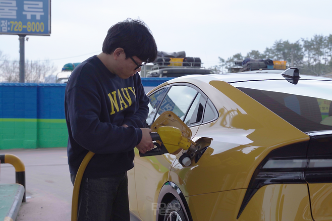 우리는 고민 끝에 배터리를 적당히 채운 뒤, 추가 충전 없이 서울과 부산을 왕복했다. 주유는 쉽지만 충전은 번거로운 현실적인 상황을 가정해 보기로 했다. 그렇게 서울→부산 코스는 기름 100%와 배터리 약 80% 상태로, 부산→서울 코스는 기름 100%만으로 주행했다. 정확한 유류비 계산을 위해 연비는 ‘풀-투-풀(Full-to-Full)’ 방식으로 측정했다. 실내에는 성인 남성 두 명이 탔고, 트렁크엔 더 이상 틈이 없을 만큼 장비와 짐을 담았다.