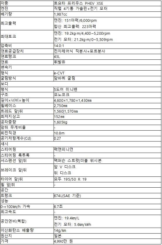 반면 완속 충전기를 마음껏 이용할 수 없을 경우 PHEV의 매력은 줄어든다. 배터리가 바닥나도 일반 하이브리드 시스템처럼 작동하지만, 무거운 배터리 탓에 효율 면에서 비교적 불리하다. 프리우스 PHEV의 공차중량은 1,605㎏. 하이브리드 버전보다 160㎏이나 무겁다. 전기 모터를 제외한 휘발유 연비는 1L당 19.4㎞로, 역시 하이브리드(20.9㎞/L)가 앞선다.