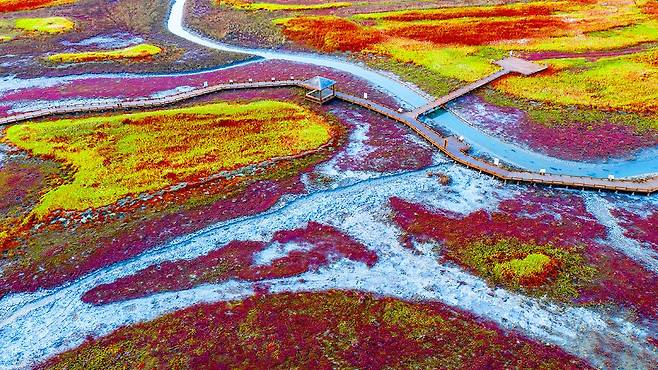 가을볕을 받아 붉게 물든 함초는 ‘칠면초’로도 불리며 바닷물과 염분을 먹고 자라는 생태계의 수호자다.