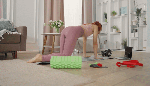 네발기기 자세로 엎드린 상태에서 오른발을 뒤로 곧게 뻗으며 무릎을 완전히 펴줍니다. 처음 자세로 돌아온 뒤, 왼발도 같은 방식으로 반복합니다. 이때 허리가 과도하게 꺾이지 않도록 주의하며 동작을 이어갑니다.