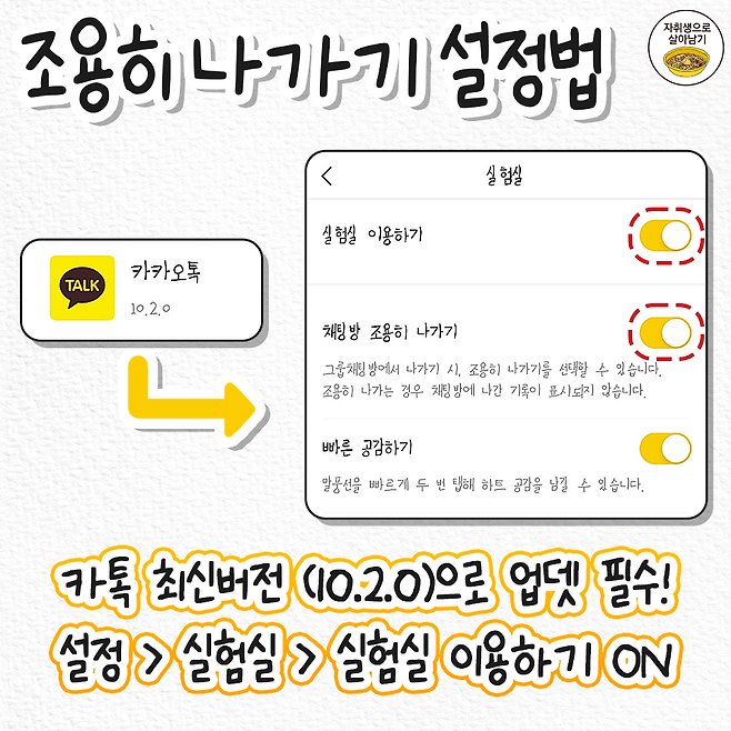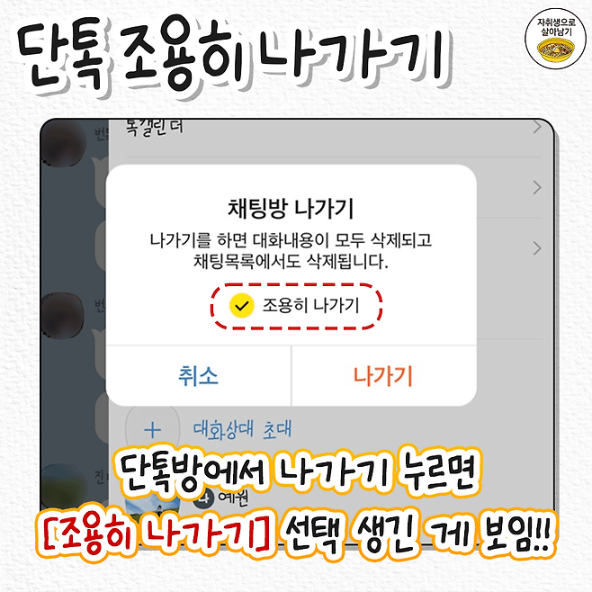 카카오톡 신기능! 단톡방 조용히 나가기 설정법