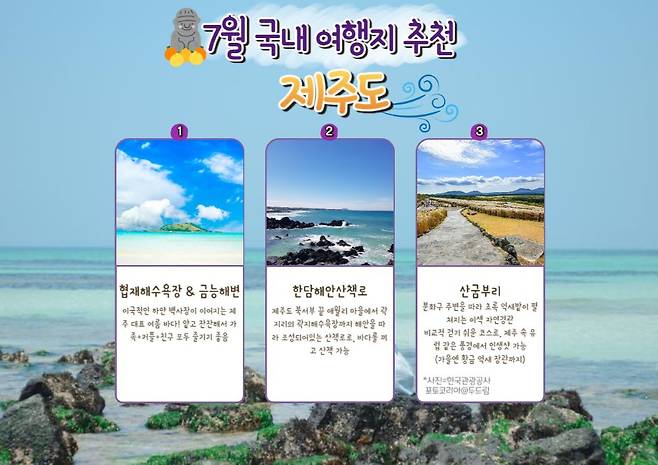여름의 제주도는 어딜 가더라도 이국적인 풍경과 제주 특유의 여유로움을 즐길 수 있어요. 아이와 함께하는 가족 여행은 물론, 감성 충만한 휴식이 필요한 분들에게도 최고의 7월 국내 여행지 추천으로 부족함이 없답니다.