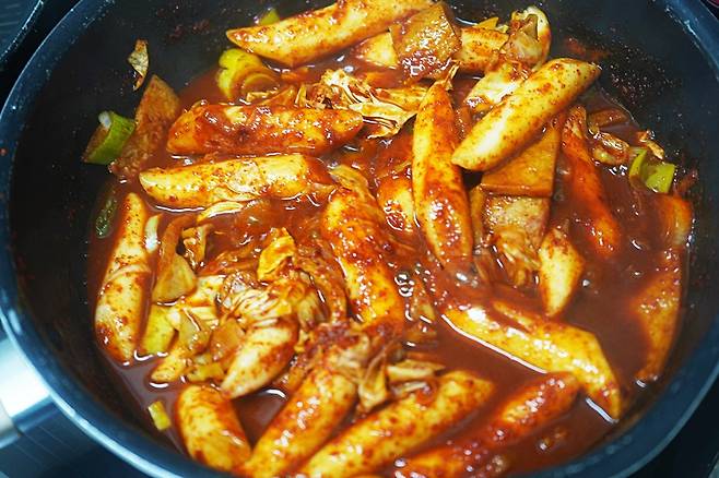 떡이 익고 양념이 졸아들기 시작하면 거의 다 된 거예요.