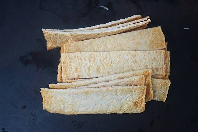 어묵은 2장을 길쭉하게 썰어줬어요.