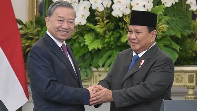 현지시각 11일 일간 콤파스 등에 따르면 인도네시아를 방문 중인 또 럼 베트남 공산당 서기장은 10일 자카르타에 있는 대통령궁에서 프라보워 수비안토 인도네시아 대통령과 정상 회담을 가졌습니다.