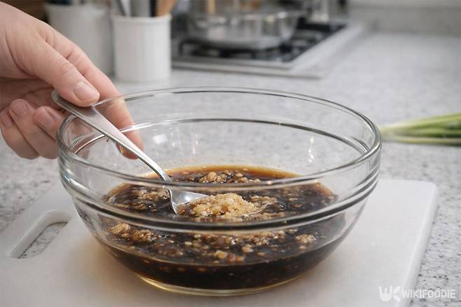 양념장은 미리 섞어두는 게 편하다. 물, 진간장, 굴 소스, 올리고당, 참치액, 다진 마늘을 한곳에 넣고 잘 섞는다. 참치액이 감칠맛을 내는 열쇠지만, 없다면 액젓이나 간장을 조금 더 넣어도 괜찮다.