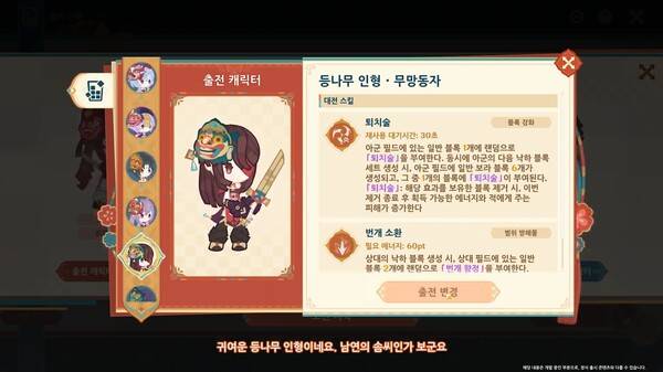 블록을 적절한 위치에 떨어뜨려 색깔이 똑같은 블록을 연결시켜 없애는 퍼즐 게임이다. 등나무 인형은 저마다 스킬이 달라서 이를 잘 활용하면 콤보로 한 반에 상대를 보내버릴 수 있다. 해당 이벤트는 다양한 난도로 설정돼 있어 다인 모드로도 대전을 즐길 수 있다.