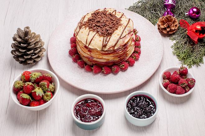 팬케이크는 크리스마스 아침에 즐기기 좋은 간단하면서도 맛있는 메뉴입니다. 신선한 과일, 시럽, 크림 등을 곁들여 타워처럼 쌓아 올리면 크리스마스 분위기도 한층 살고 맛있게 즐길 수 있습니다.