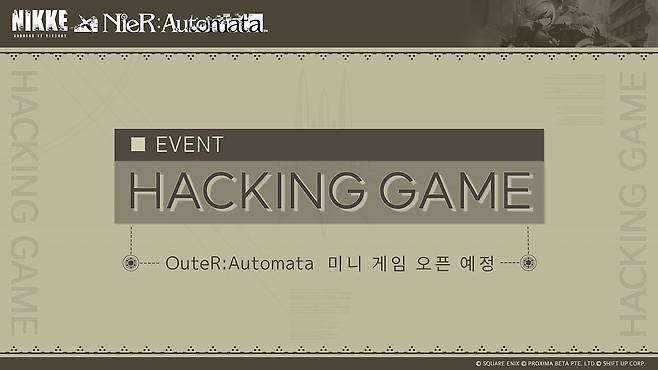 미리 확인해볼 수는 없었지만, 해킹 미니게임 역시 원작을 최대한 재현한 모습으로 들어올 예정이라고 합니다. 최근 바비큐 미니게임으로 호평을 얻은 '니케'팀인 만큼, 해킹 미니게임 역시 기대해봐도 좋지 않을까 싶습니다.