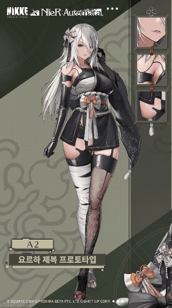 추가 코스튬은 2B와 마찬가지로 단발 머리에 코스튬 노출도가 올라가는 '중파상태'와 원작의 DLC를 재현한 '요르하 제복 프로토타입'의 두 가지입니다. 중파상태는 2B와 동일하게 캐릭터 획득과 함께 추가되며, 요르하 제복 프로토타입은 'YoRHa Pass 프리미엄'의 랭크 10을 달성해 획득 가능합니다. 코스튬 패스는 대대로 가성비가 좋은 만큼, A2의 획득 여부와 상관없이 결제해도 괜찮지 않을까 싶습니다.