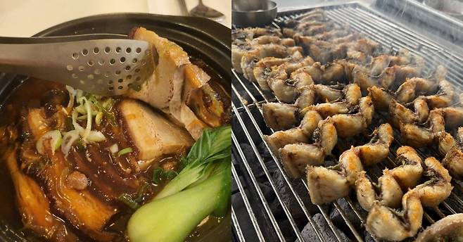 정말 크고 통통한 대물장어는 갓 손질해서 매우 신선한 탓인지 숯불에 구워지기 전 꼬리가 꿈틀대는 모습을 볼 수 있다. 게다가 그 살은 쫄깃하면서도 부드러워 입안이 즐거워지는 특별한 맛을 자랑한다.