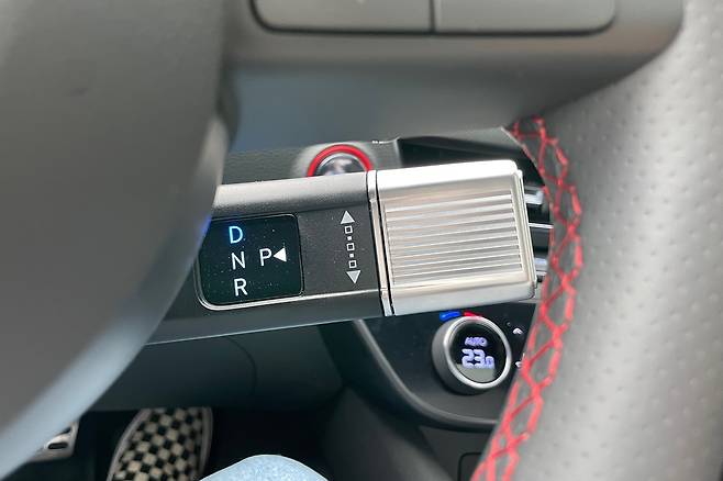 스티어링 컬럼 레버도 널리 쓰이는 형태다. 기존 와이퍼 레버가 있던 위치에 자리하며, R-N-D 순의 레인지 배열을 보인다. 레버를 올리면 후진, 내리면 전진으로 기존의 기계식 컬럼 레버 방식과 유사하다. P 레인지는 역시나 레버 끝의 버튼을 누르면 변속된다. 스티어링 휠을 잡은 채 조작할 수 있는 데다가 직관적이며, 주변 공간을 차지하지 않는다는 점에서 장점이 많다. 그래서 요즘 나오는 메르세데스-벤츠 차량 대부분이 이 방식이며, 테슬라, 폴스타, 볼보 일부 차종도 같은 방식을 사용한다.