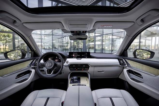 차량의 외관 디자인도 인상적이다. 마쓰다의 상징적인 긴 보닛과 대형 그릴, 헤드램프 디자인은 이 차량이 플래그십 모델임을 한눈에 알아볼 수 있게 한다.