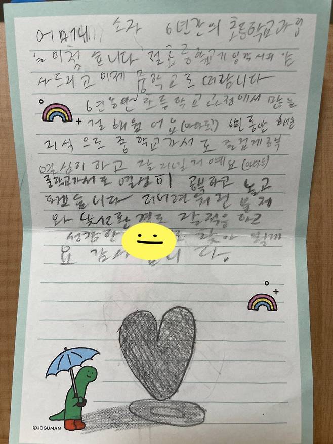 어머님, 소자 6년간의 초등학교 과정을 마쳤습니다.