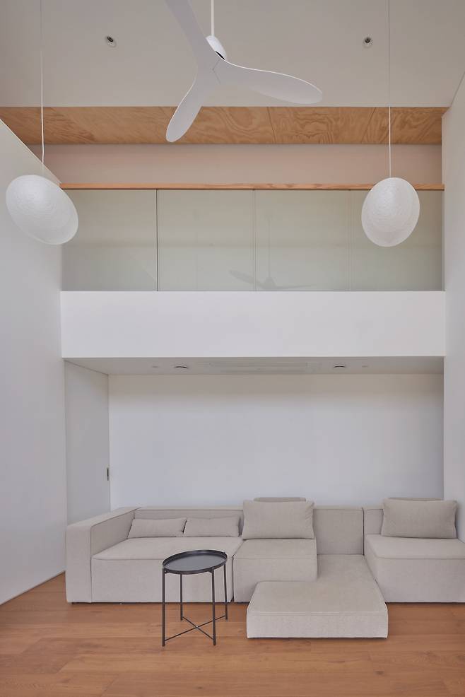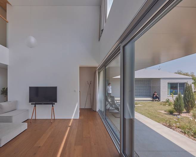 거실은 집의 일부이지만, 집 밖의 카페와 같은 느낌이 묻어나는 공간으로 계획하고자 생활공간과 명확하게 분리했다.