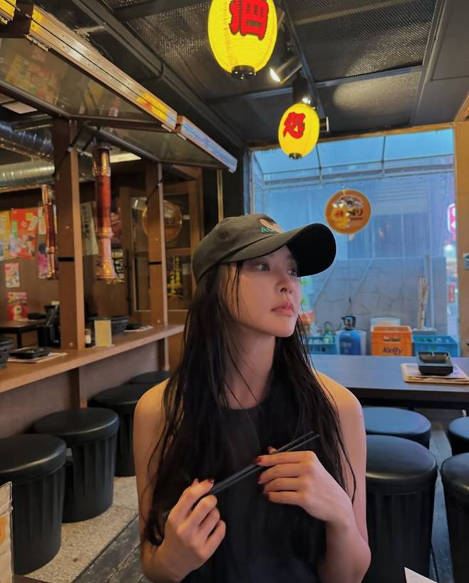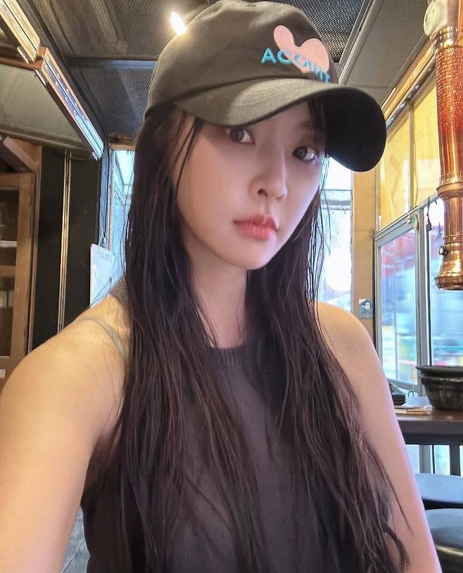 딥한 컬러의 민소매 톱과 볼캡을 매치해 꾸밈없는 스트리트 감성을 연출했습니다.