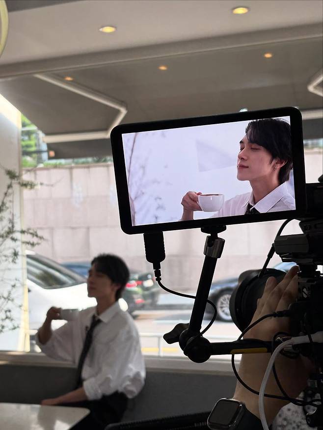 에이프런을 두르고 커피를 준비하는 모습에서 진지한 눈빛과 손끝에 집중된 디테일은 마치 한 편의 영화 속 장면처럼 완성도를 더한다.
