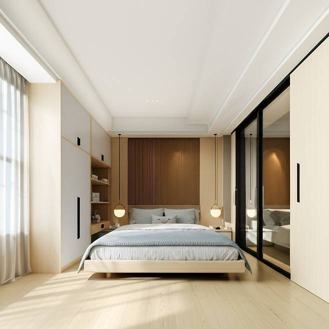 • 최소한의 가구 배치: 침대, 옷장, 협탁 등 필수적인 가구 외에는 불필요한 가구를 줄이는 것이 좋습니다. 책상이나 화장대 대신 벽걸이 선반이나 거울을 활용하여 공간을 절약할 수 있습니다.