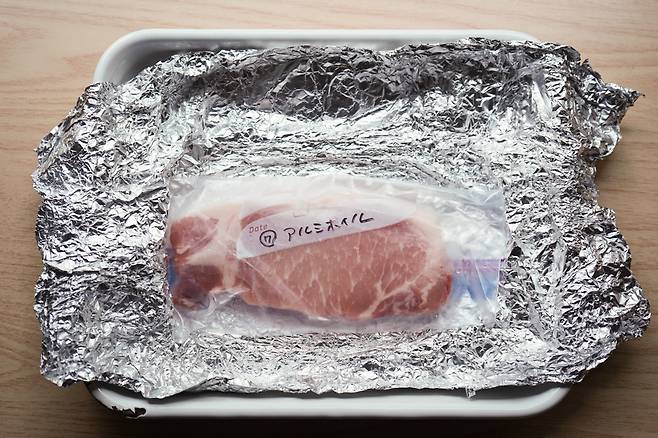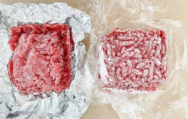 알루미늄 호일 해동법은 얼음 결정이 천천히 녹으면서 육질이 부드럽게 유지된다.