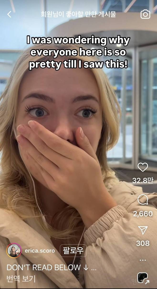 한국살고있는 외국인모델겸 인플루언서인데 한국사람들이 예쁜 이유를 찾아냈다고함