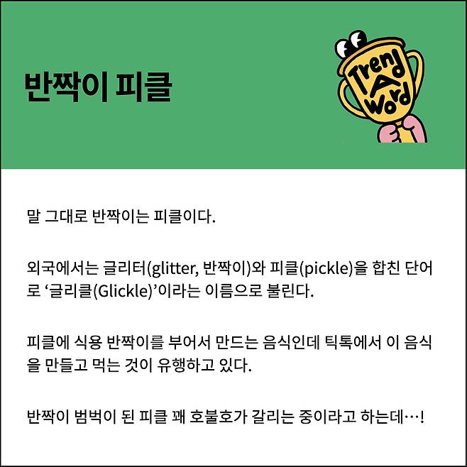 글리터(glitter, 반짝이)와 피클(pickle)을 합친 이 단어는