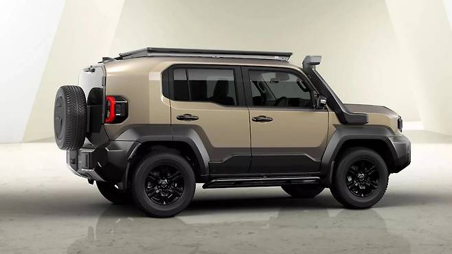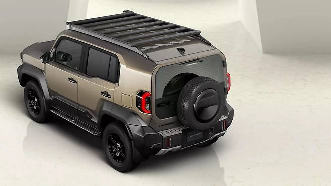 측면으로 시선을 옮기면 과장된 펜더 플레어와 두툼한 블랙 클래딩이 시선을 사로잡는다. 창문 형태는 대형 랜드크루저를 그대로 축소한 듯하다. 후면 디자인은 더욱 대담하다. 테일게이트에 장착된 스페어타이어가 리어 윈도우를 거의 가린다. 실용성을 위해 시야를 포기한 셈이다.