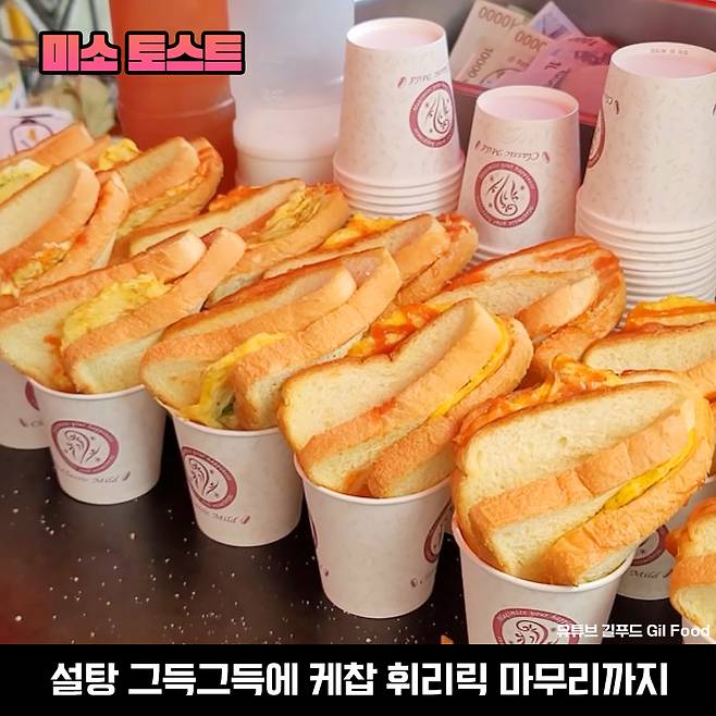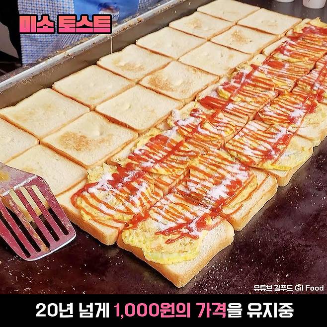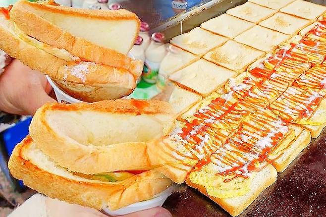 이곳의 토스트 가격은 천원이에요. 요즘 같은 물가에 천원이라니! 하지만 맛은 그 이상으로 넘나 훌륭하다는 게 반전. 즉석에서 따끈따끈하게 갓 만들어주신 토스트 한입 먹으면 행복이 바로 이곳에..(^^)