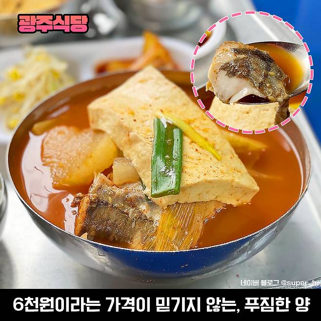 커다란 그릇에 한가득 나오는 동태탕은 얼큰하면서도 시원한 국물이 일품이며 통통한 동태와 푹 익은 무가 담겨 나와요. 식사는 물론 해장으로도 딱이라는! 6천원이라는 가격이 믿기지 않는, 푸짐한 양입니다.