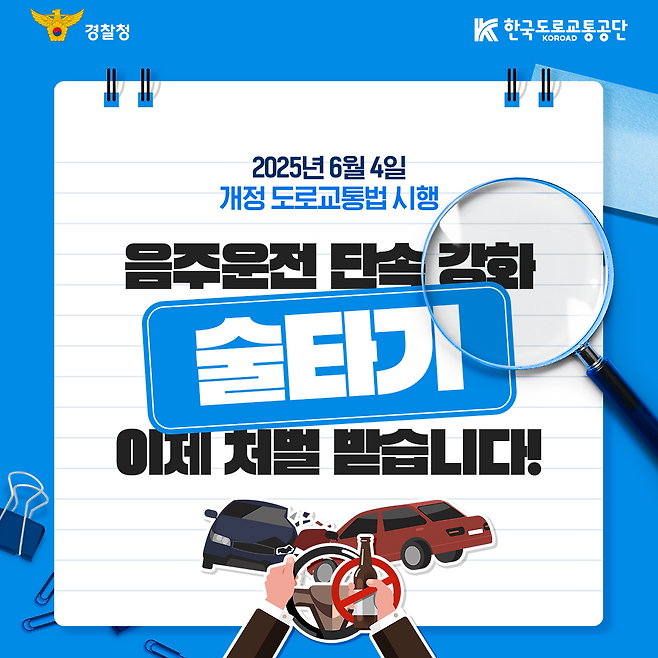 도로교통공단은 "이번 개정은 음주 단속의 사각지대를 해소하고, 교통사고를 줄이기 위한 조치"라며 "국민이 개정 내용을 쉽게 이해할 수 있도록 다양한 채널을 통해 지속적으로 안내할 계획"이라고 밝혔다.