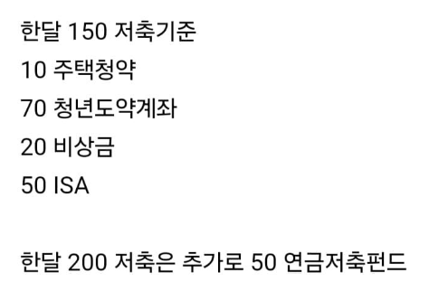 👉 정리하자면, 최소 월급의 20% 이상 저축을 목표로 하되, 소득이 높아질수록 저축률을 더 올려 30% 이상 유지하는 것이 가장 이상적입니다.