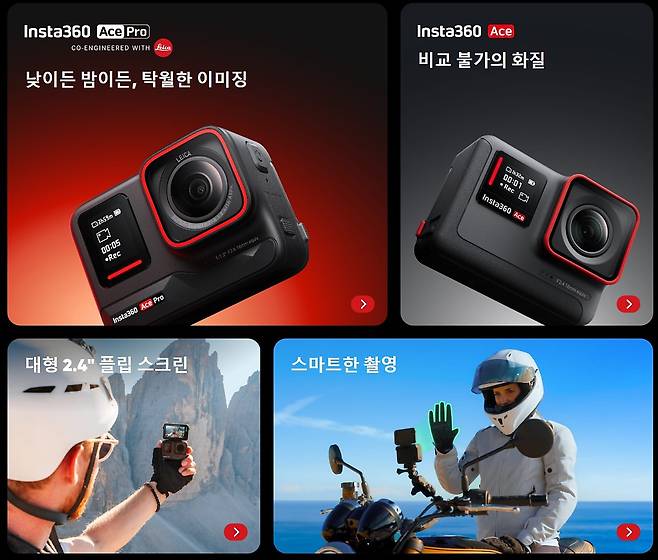 모듈 방식의 ONE부터 360 카메라까지 다양한 시도와 도전을 선보이던 인스타360 브랜드이기도 하죠. 국내에서도 많은 사랑을 받고 있기도 하지만, 액션캠 성능이나 화질에서는 고프로 시리즈에 비해 아쉬움을 보여줬던 것도 사실이기도 했죠. 이번 인스타360 에이스프로의 출시로 새로운 전환점을 맞게 될 수 있을지 개인적으로 기대가 많이 되는 모델이기도 합니다.