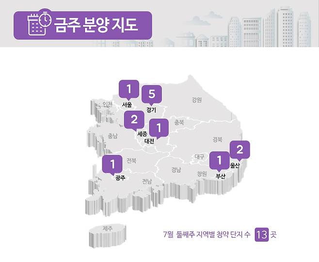 부동산인포에 따르면 7월 2주 전국에서 신규 청약 및 입주자를 모집하는 곳은 13곳, 총 5703가구로 집계됐습니다(총 가구수 기준).