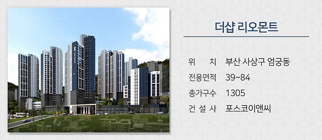 포스코이앤씨는 부산 사상구 엄궁동에 짓는 ‘더샵 리오몬트’를 분양합니다. 오는 2026년 개통예정인 사상~하단선 엄궁역 역세권이며 서부산 행정복합타운 등 개발 호재도 갖췄습니다.