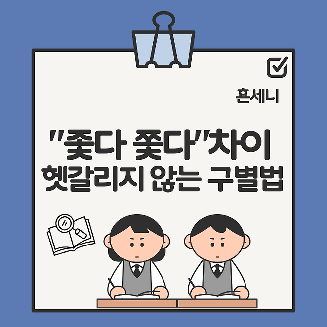 자음 하나로 뉘앙스가 확연히 달라진 좇다 쫓다 차이 이제 안 헷갈리시겠죠? 전 사실 좇다가 틀린 단어라고 생각했거든요. 이젠 몸과 마음 2가지만 기억하면 헷갈리지 않을 것 같아요