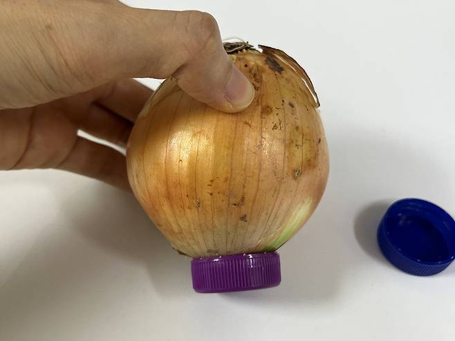 양파는 통풍이 잘되지 않으면 내부 수분이 빠져나오지 못해 쉽게 상하게 되는데, 병뚜껑을 활용하면 양파가 바닥에 닿는 면적을 획기적으로 줄일 수 있어 보관 기간이 길어집니다. 병뚜껑으로 만든 틈 사이로 공기가 흐르면서 습기가 머무르지 않게 도와줍니다.