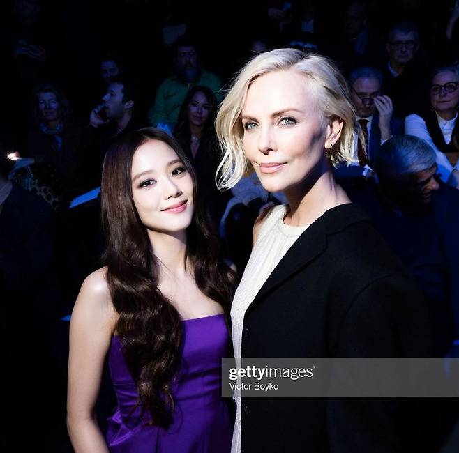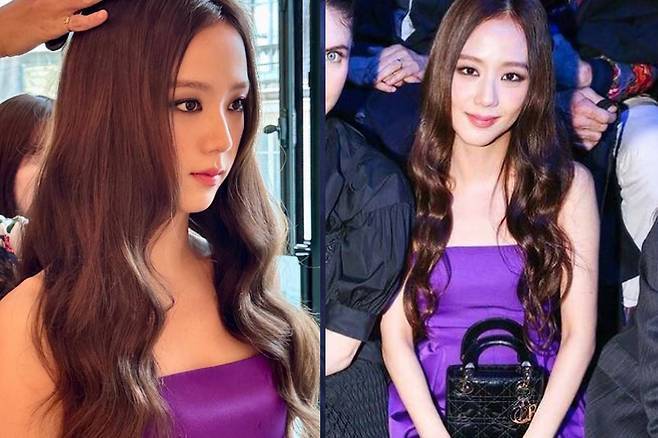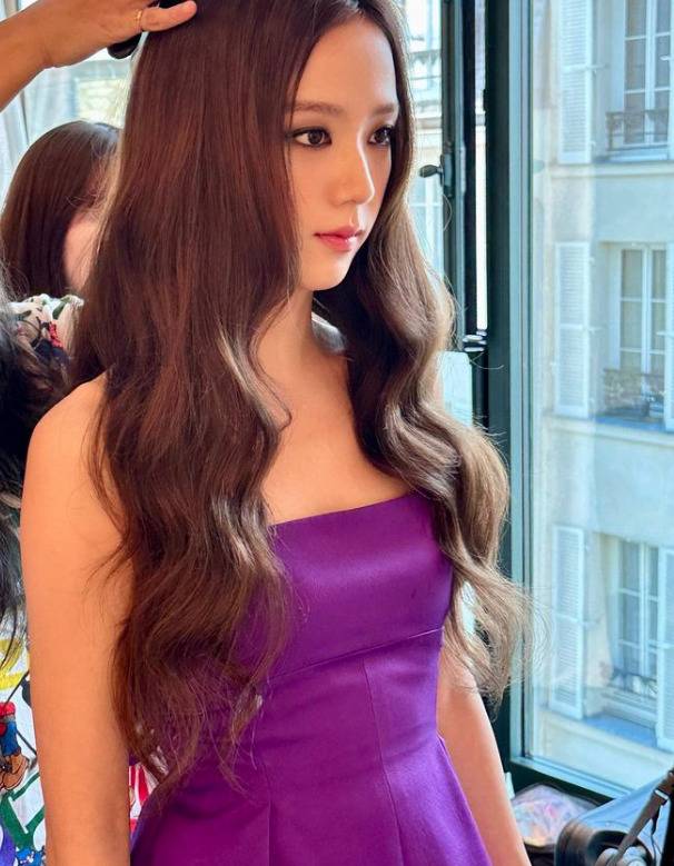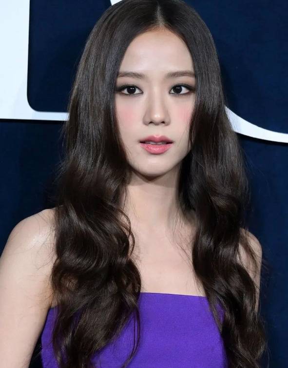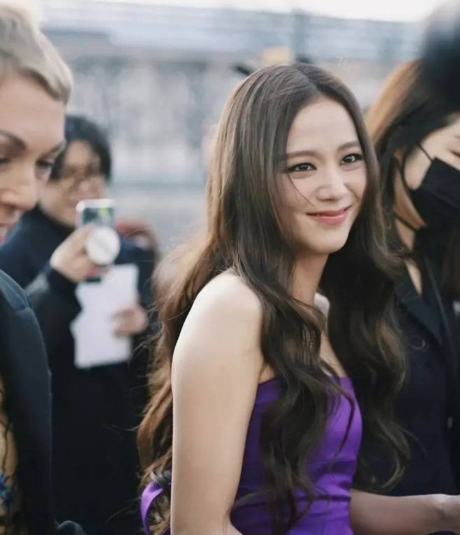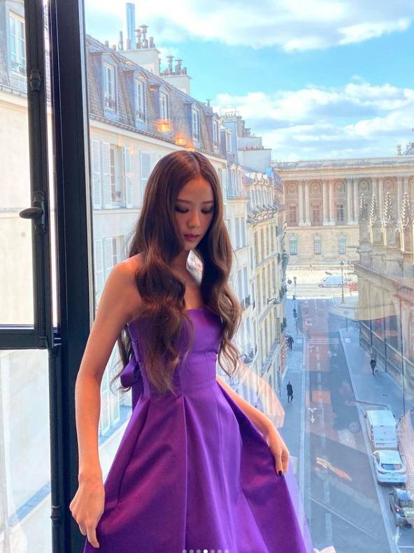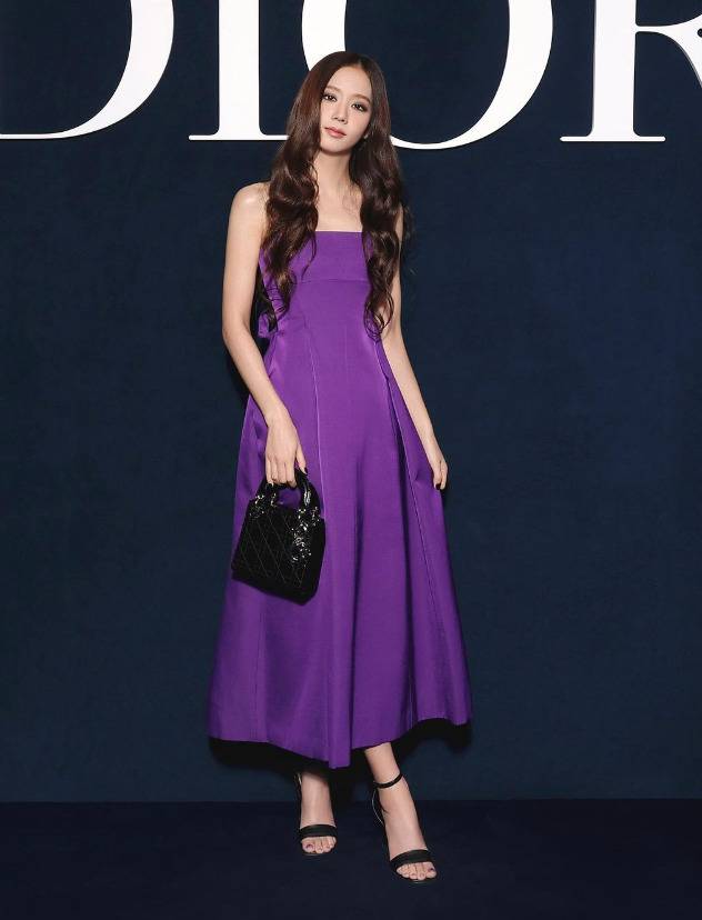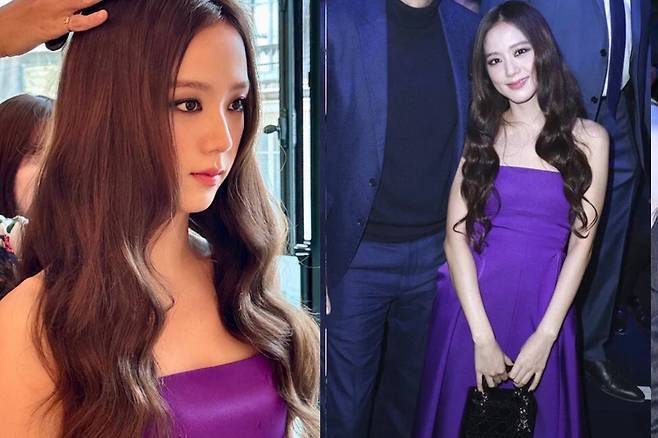 지수는 스모키 메이크업에 퍼플 드레스로 아름다운 자태를 뽐냈다.
