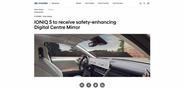이 가운데 소비자가 가장 반길 옵션은 ‘디지털 룸미러’다. 지난 7월 31일 현대자동차는 글로벌 뉴스룸을 통해 "2024년형 아이오닉 5부터 디지털 센터 미러(이하 디지털 룸미러)를 탑재한다"는 소식을 전한 바 있다.