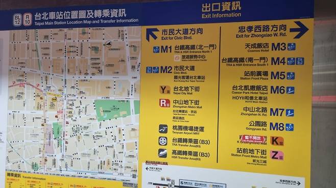 여기서 만약 타오위안 공항에서 공항철도 MRT를 타고 타이베이역까지 왔다면 금방 지하상가로 이동할 수 있을겁니다.