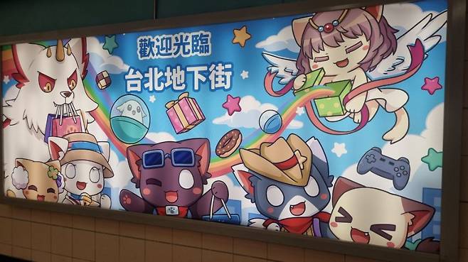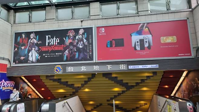 여기 타이베이 지하상가에서 인상적인 점은 하나 꼽자면 바로 천장 위에 저렇게 게임 광고들을 쫙 배치해 놨다는 점이네요.
